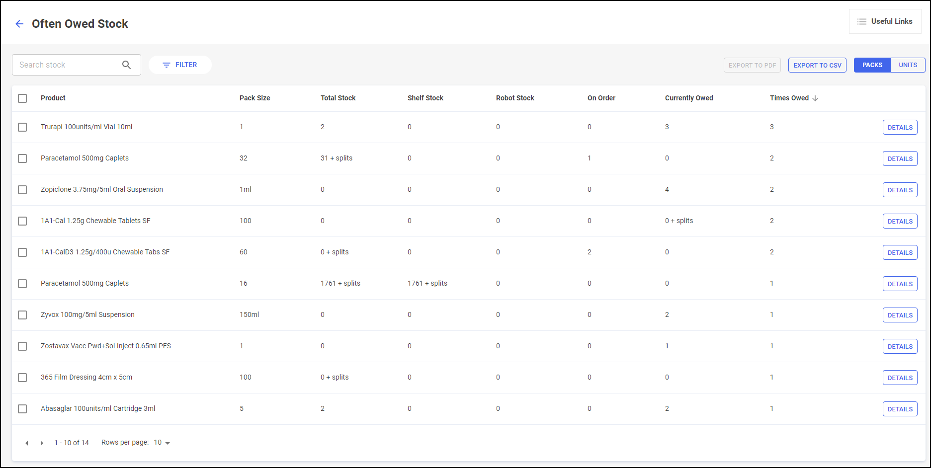 This displays a real-time count of the number of products within the pharmacy that are deemed as often owed. This is calculated based on products which are owed a minimum number of times over a set number of days: