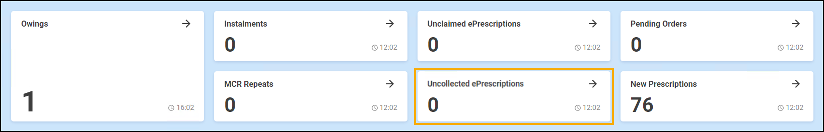 From the Pharmacy Manager Dashboard, select Uncollected ePrescriptions: