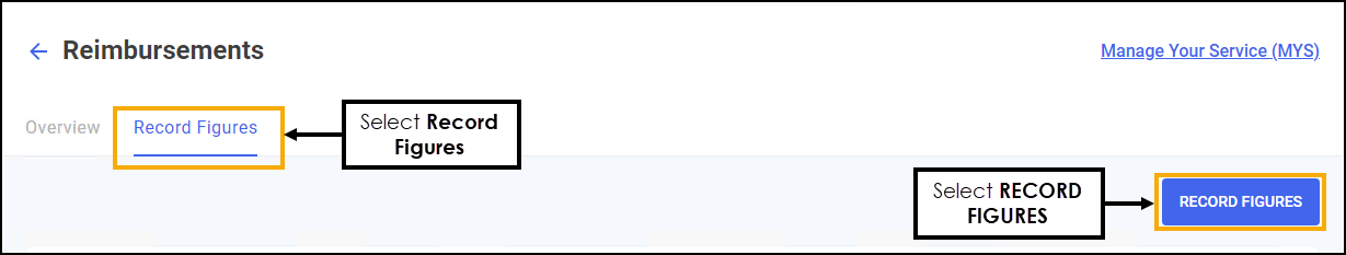 From the Reimbursements screen, select the Record Figures tab and then select RECORD FIGURES